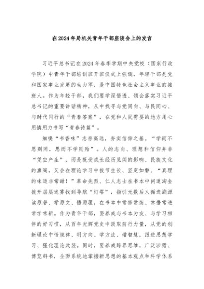 / 【七哥公文】2024年:在2024年局机关青年干部座谈会上的发言+更多免费公文+VX:QiGeGongWen2024