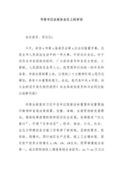 / 【七哥公文】2024年:市委书记在政协会议上的讲话+更多免费公文+VX:QiGeGongWen2024