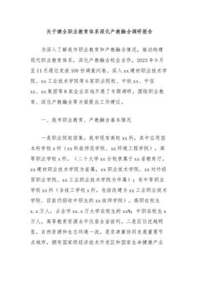 / 【七哥公文】2024年:关于健全职业教育体系深化产教融合调研报告+更多免费公文+VX:QiGeGongWen2024