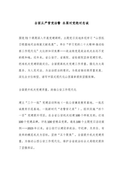 / 【七哥公文】2024年:全面从严管党治警永葆对党绝对忠诚+更多免费公文+VX:QiGeGongWen2024