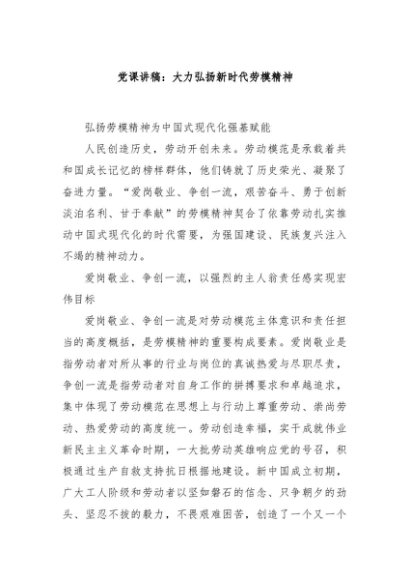 / 【七哥公文】2024年:党课讲稿:大力弘扬新时代劳模精神+更多免费公文+VX:QiGeGongWen2024