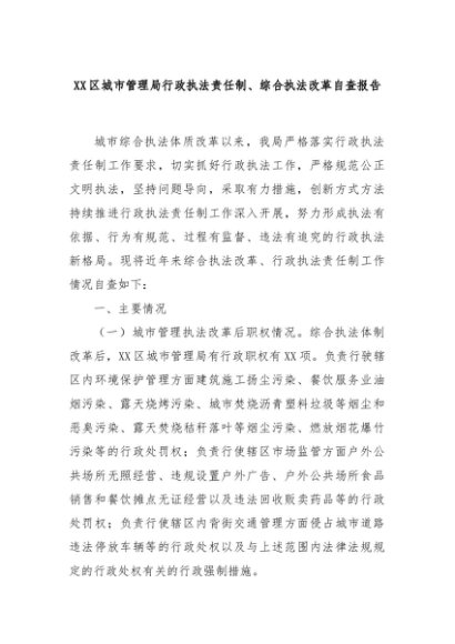 【七哥公文】2024年:XX区城市管理局行政执法责任制、综合执法改革自查报告+更多免费公文+VX:QiGeGongWen2024