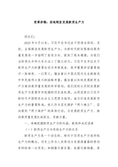 / 【七哥公文】2024年:党课讲稿:因地制宜发展新质生产力+更多免费公文+VX:QiGeGongWen2024