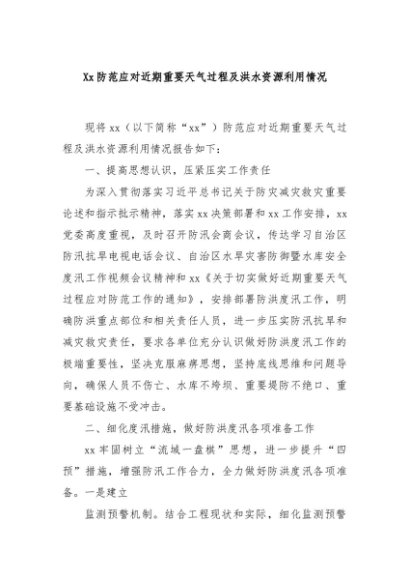 / 【七哥公文】2024年:Xx防范应对近期重要天气过程及洪水资源利用情况+更多免费公文+VX:QiGeGongWen2024