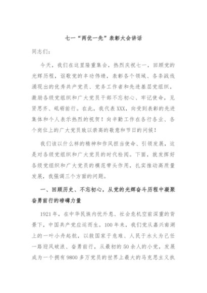 / 【七哥公文】2024年:七一“两优一先”表彰大会讲话+更多免费公文+VX:QiGeGongWen2024