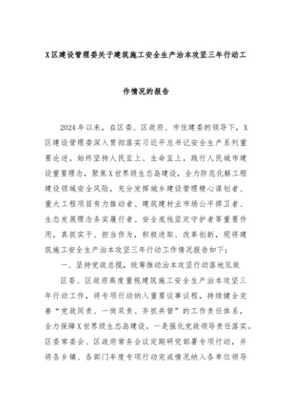 【七哥公文】2024年:X区建设管理委关于建筑施工安全生产治本攻坚三年行动工作情况的报告+更多免费公文+VX:QiGeGongWen2024