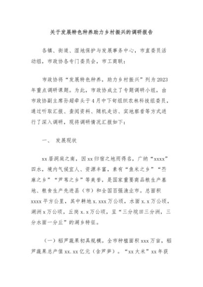 / 【七哥公文】2024年:关于发展特色种养助力乡村振兴的调研报告+更多免费公文+VX:QiGeGongWen2024