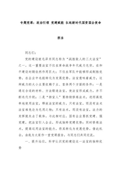 【七哥公文】2024年:专题党课:政治引领 党建赋能 扛起新时代国资国企使命担当+更多免费公文+VX:QiGeGongWen2024