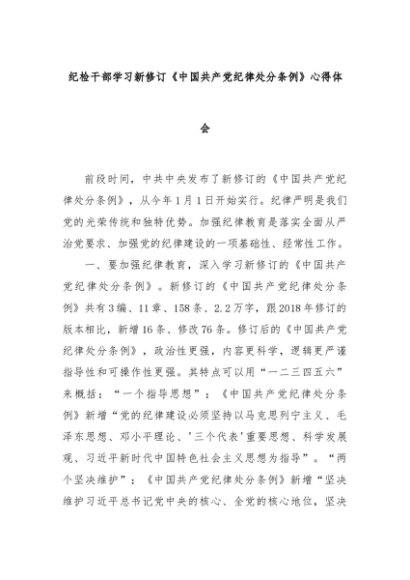 【七哥公文】2024年:纪检干部学习新修订《中国共产党纪律处分条例》心得体会+更多免费公文+VX:QiGeGongWen2024