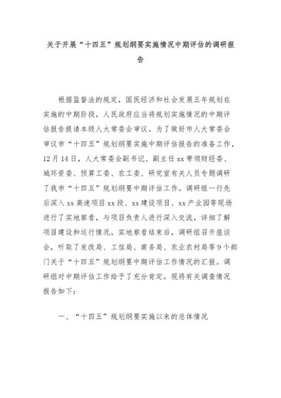 【七哥公文】2024年:关于开展“十四五”规划纲要实施情况中期评估的调研报告+更多免费公文+VX:QiGeGongWen2024
