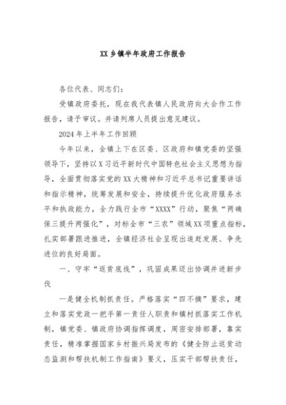 / 【七哥公文】2024年:XX乡镇半年政府工作报告+更多免费公文+VX:QiGeGongWen2024