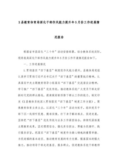 【七哥公文】2024年:X县教育体育局深化干部作风能力提升年5月份工作进展情况报告+更多免费公文+VX:QiGeGongWen2024