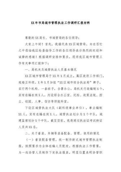 / 【七哥公文】2024年:XX年市局城市管理执法工作调研汇报材料+更多免费公文+VX:QiGeGongWen2024