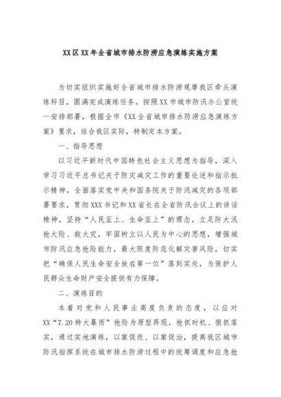 / 【七哥公文】2024年:XX区XX年全省城市排水防涝应急演练实施方案+更多免费公文+VX:QiGeGongWen2024