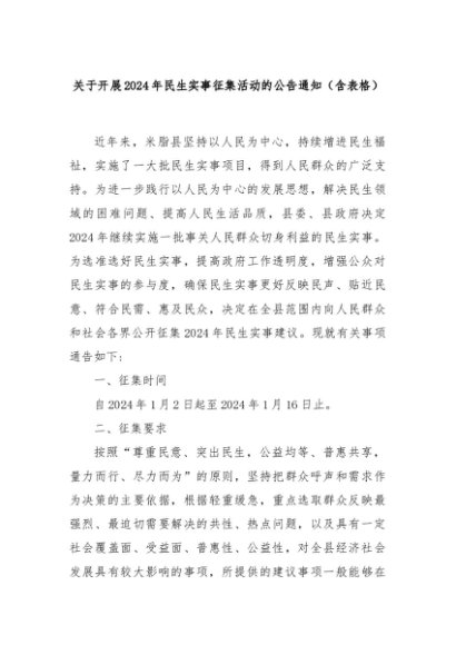 【七哥公文】2024年:关于开展2024年民生实事征集活动的公告通知(含表格)+更多免费公文+VX:QiGeGongWen2024