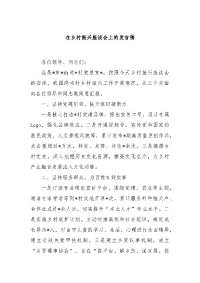 / 【七哥公文】2024年:在乡村振兴座谈会上的发言稿+更多免费公文+VX:QiGeGongWen2024