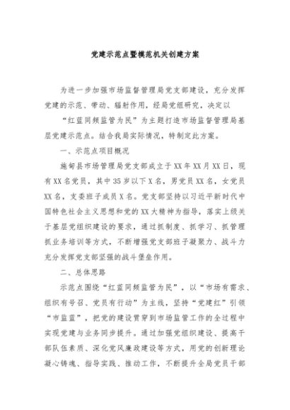 / 【七哥公文】2024年:党建示范点暨模范机关创建方案+更多免费公文+VX:QiGeGongWen2024
