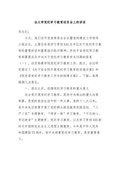 / 【七哥公文】2024年:在大学党纪学习教育动员会上的讲话+更多免费公文+VX:QiGeGongWen2024