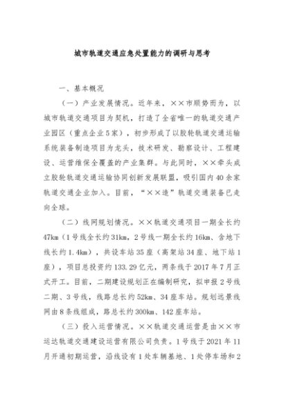 / 【七哥公文】2024年:城市轨道交通应急处置能力的调研与思考+更多免费公文+VX:QiGeGongWen2024