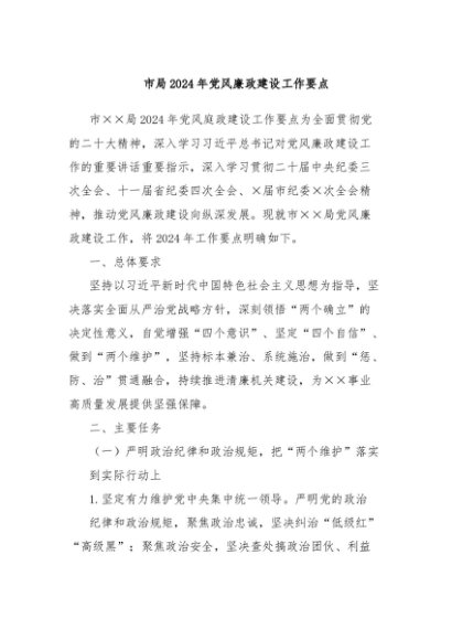 / 【七哥公文】2024年:市局2024年党风廉政建设工作要点+更多免费公文+VX:QiGeGongWen2024