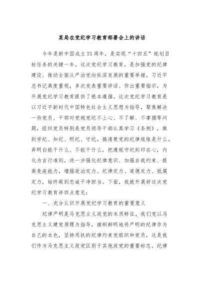 / 【七哥公文】2024年:某局在党纪学习教育部署会上的讲话+更多免费公文+VX:QiGeGongWen2024