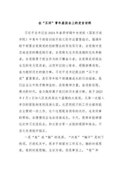/ 【七哥公文】2024年:在“五四”青年座谈会上的发言材料+更多免费公文+VX:QiGeGongWen2024