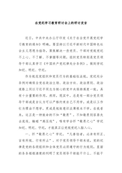 / 【七哥公文】2024年:在党纪学习教育研讨会上的研讨发言+更多免费公文+VX:QiGeGongWen2024