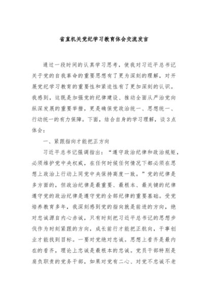 / 【七哥公文】2024年:省直机关党纪学习教育体会交流发言+更多免费公文+VX:QiGeGongWen2024