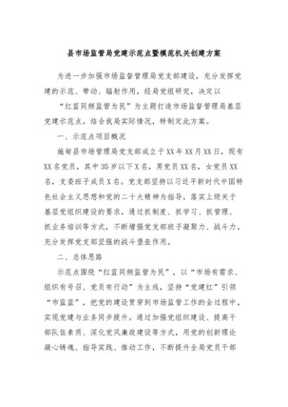 / 【七哥公文】2024年:县市场监管局党建示范点暨模范机关创建方案+更多免费公文+VX:QiGeGongWen2024