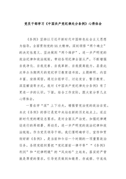 【七哥公文】2024年:党员干部学习《中国共产党纪律处分条例》心得体会+更多免费公文+VX:QiGeGongWen2024