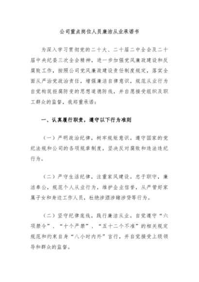 / 【七哥公文】2024年:公司重点岗位人员廉洁从业承诺书+更多免费公文+VX:QiGeGongWen2024