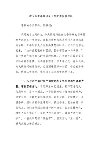 / 【七哥公文】2024年:在五四青年座谈会上的交流发言材料+更多免费公文+VX:QiGeGongWen2024