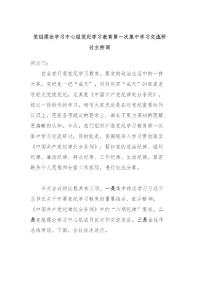 【七哥公文】2024年:党组理论学习中心组党纪学习教育第一次集中学习交流研讨主持词+更多免费公文+VX:QiGeGongWen2024