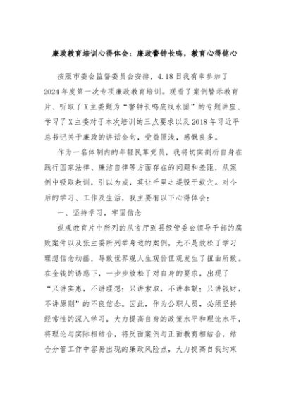 / 【七哥公文】2024年:廉政教育培训心得体会:廉政警钟长鸣,教育心得铭心+更多免费公文+VX:QiGeGongWen2024