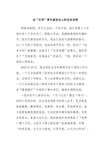 / 【七哥公文】2024年:在“五四”青年座谈会上的发言材料 (2)+更多免费公文+VX:QiGeGongWen2024