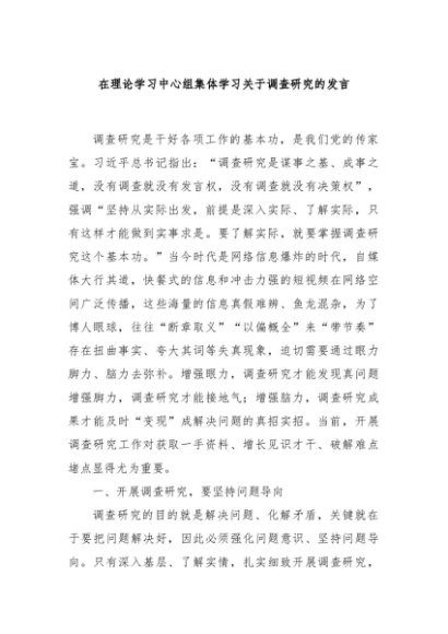 / 【七哥公文】2024年:在理论学习中心组集体学习关于调查研究的发言+更多免费公文+VX:QiGeGongWen2024
