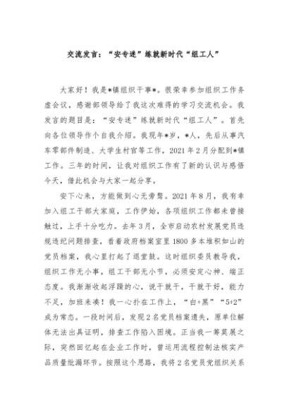 / 【七哥公文】2024年:交流发言:“安专迷”练就新时代“组工人”+更多免费公文+VX:QiGeGongWen2024