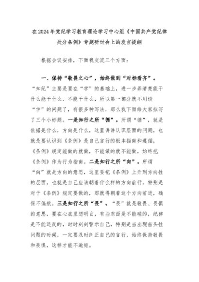【七哥公文】2024年:在2024年党纪学习教育理论学习中心组《中国共产党纪律处分条例》专题研讨会上的发言提纲+更多免费公文+VX:QiGeGongWen2024