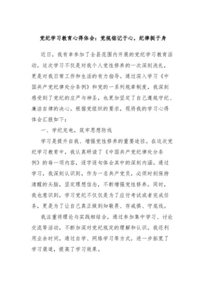 【七哥公文】2024年:党纪学习教育心得体会:党规铭记于心,纪律挺于身+更多免费公文+VX:QiGeGongWen2024