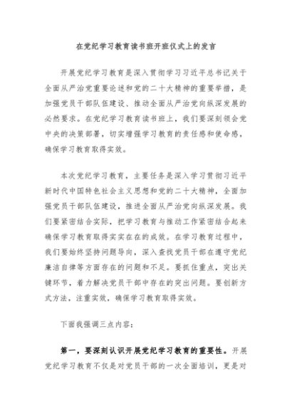 / 【七哥公文】2024年:在党纪学习教育读书班开班仪式上的发言+更多免费公文+VX:QiGeGongWen2024