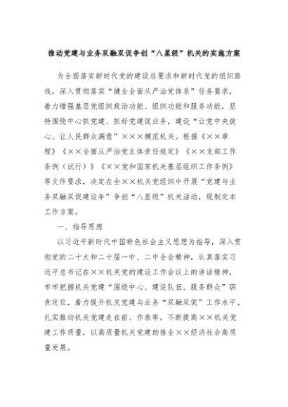 【七哥公文】2024年:推动党建与业务双融双促争创“八星级”机关的实施方案+更多免费公文+VX:QiGeGongWen2024