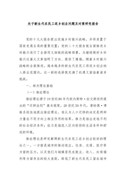 / 【七哥公文】2024年:关于新生代农民工返乡创业问题及对策研究报告+更多免费公文+VX:QiGeGongWen2024