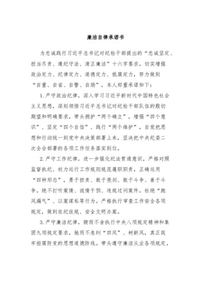 / 【七哥公文】2024年:廉洁自律承诺书+更多免费公文+VX:QiGeGongWen2024