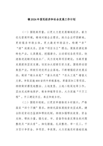 / 【七哥公文】2024年:镇 2024年国民经济和社会发展工作计划+更多免费公文+VX:QiGeGongWen2024