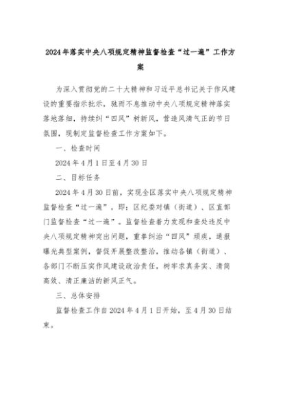 【七哥公文】2024年:2024年落实中央八项规定精神监督检查“过一遍”工作方案+更多免费公文+VX:QiGeGongWen2024