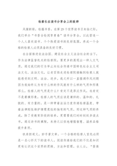 【七哥公文】2024年:检察长在读书分享会上的致辞+更多免费公文+VX:QiGeGongWen2024