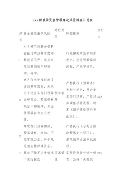 【七哥公文】2024年:xxx财政局资金管理廉政风险排查汇总表+更多免费公文+VX:QiGeGongWen2024