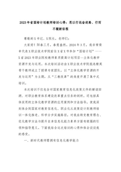 【七哥公文】2024年:2023年省国培计划教师培训心得:思以行远奋进路、行而不辍新征程+更多免费公文+VX:QiGeGongWen2024