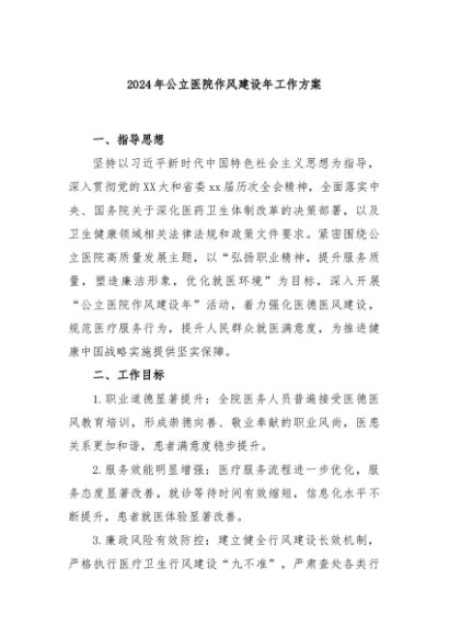 / 【七哥公文】2024年:2024年公立医院作风建设年工作方案+更多免费公文+VX:QiGeGongWen2024