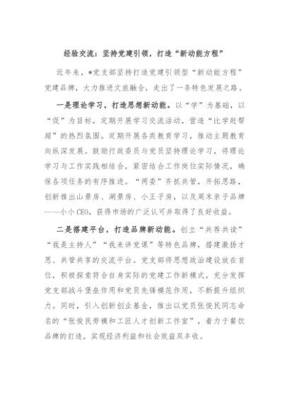 / 【七哥公文】2024年:经验交流:坚持党建引领,打造“新动能方程”+更多免费公文+VX:QiGeGongWen2024